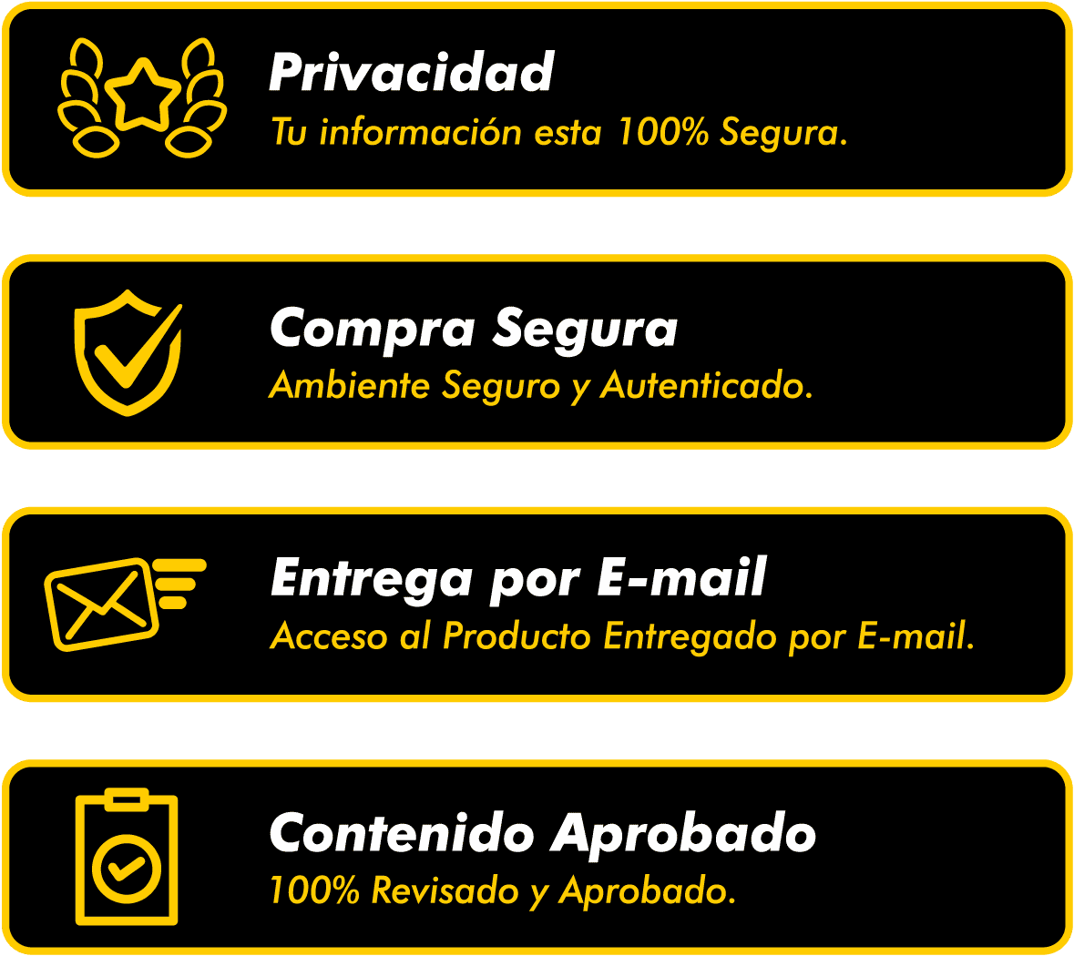 Estamos tan seguros de la calidad de nuestro contenido que te ofrecemos 7 días a partir de la compra, si dentro de ese período nuestro Ebook no cumple y/o supera tus expectativas, vamos a devolver tu dinero sin hacer preguntas. Te lo garantiza Hotmart®, la plataforma donde vas a realizar el pago.