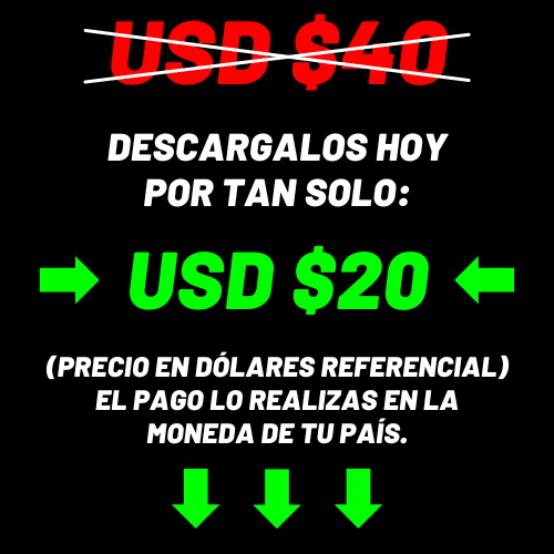 Solo Por Hoy, puedes Adquirirlo con el 50% DE DESCUENTO, es decir, un único pago de $20 con acceso de por vida y con derecho a todas las actualizaciones que realizaremos.